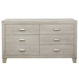 The modern styling of the quinby collection is achieved by merging the natural look of wood grain with the clean lines of contemporary design to create a one-of-a-kind bedroom set that will fit in perfectly with the overall aesthetic of your house. the subtly contrasting nickel-finished metal fixed drawer pulls and the clean, defined lines of the framing work together to create the perfect match for the embossed faux-wood grain that is featured on the dresser.