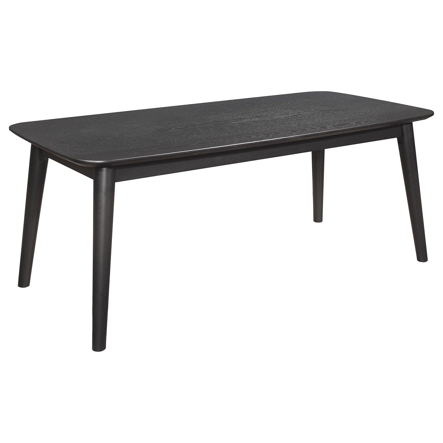 Amid the modern milieu, a three-piece coffee occasional table set stands as a beacon of mid-century inspiration. The coffee table, along with its twin end tables, boasts a black finish so deep it seems to hold secrets within its ash veneer wood grain. Elegant angles converge in the 45-degree chamfered edge profile, softening the silhouette while maintaining a crisp, architectural line. This ensemble, crafted from a harmonious blend of solid and engineered wood, is a tribute to both form and function, a striking centerpiece to any gathering space where stories are shared over cups of coffee.
