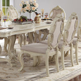 Ragenardus Fabric & Antique White Finish Side Chair (Set-2)