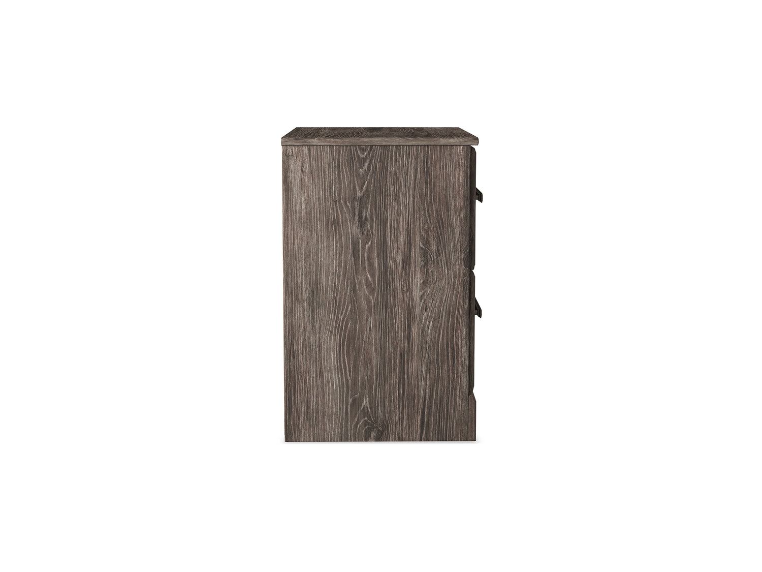 Series Features: Rustic warm gray finish over replicated Oak grain with authentic touch. Large dark pewter color handles with an aged appearance accent cases. Side roller glides for smooth operating drawers. Mouldings across headboard give a thick planked look. Twin (53) and full (55) headboards can attach to a bolt-on metal bed frame B100-21. Safety is a top priority, clothing storage units are designed to meet the most current standard for stability, ASTM F 2057 (ASTM International). Drawers extend out to accommodate maximum access to drawer interior while maintaining safety.