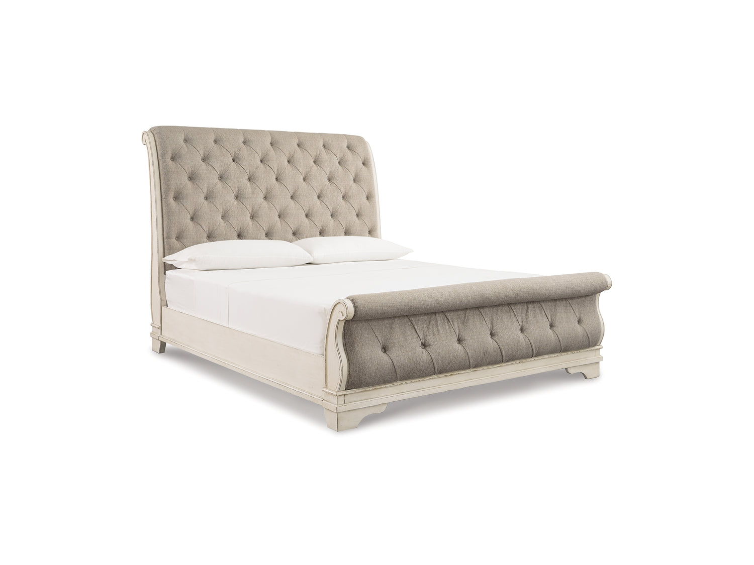 Realyn Chipped White Queen Sleigh Bed is backordered and will ship as soon as it is back in stock.