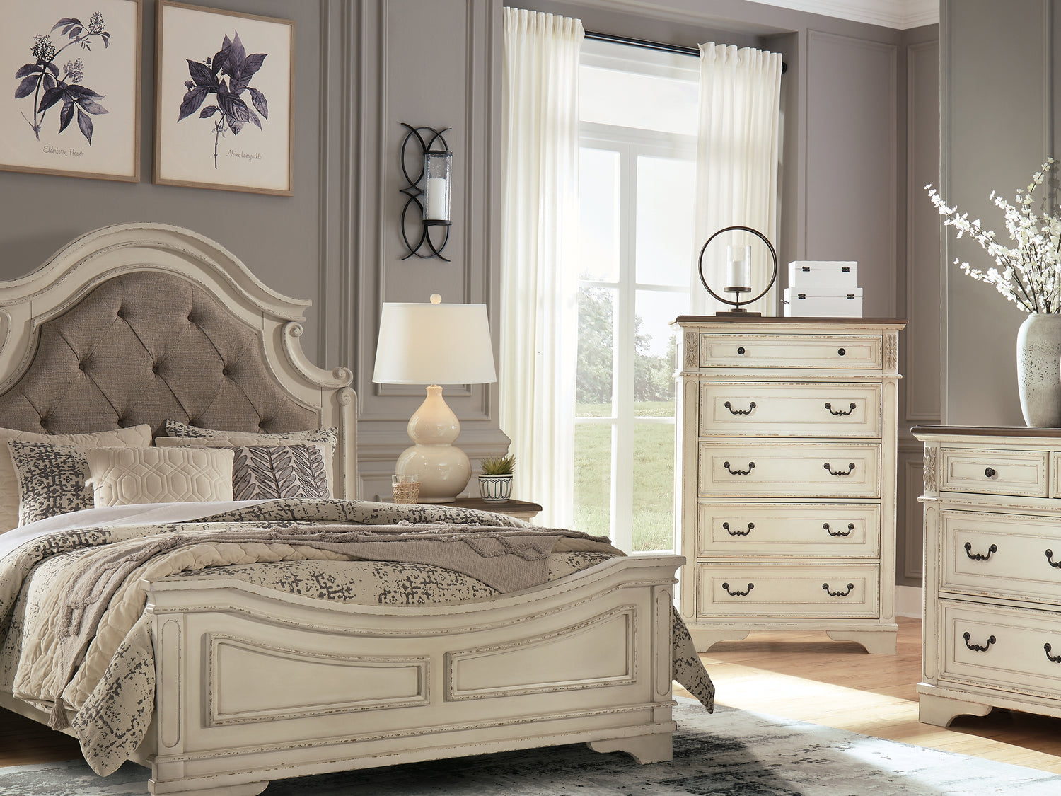 Item Name: Realyn Queen Panel Bed, Dresser, Chest and 2 Nightstands
