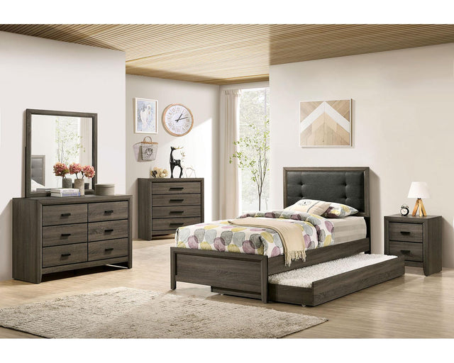 The perfect juvenile-sized chest for the young person with maturing tastes. With a gray wood grain finish and black drawer pulls, this represents a new standard for the youth segment. Your kids will appreciate just how well this chest accommodates them.