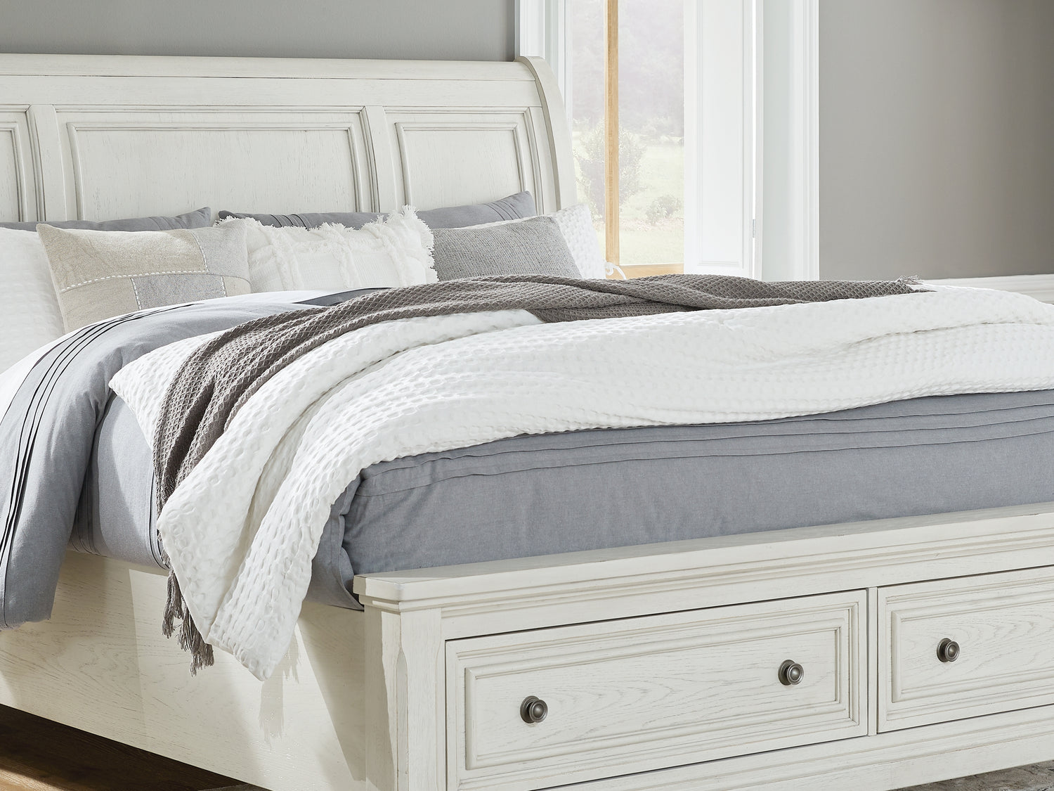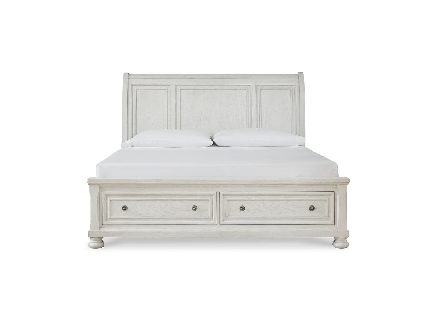 Robbinsdale Antique White California King Sleigh Bed With Storage