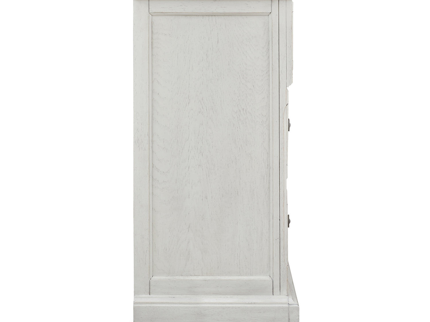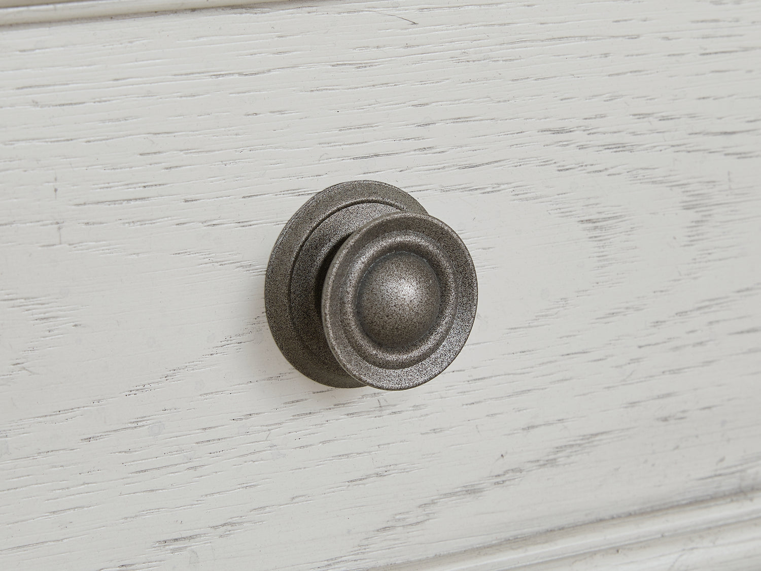 Series Features: Timeless traditional design. Made with select Oak veneer, MDF and solid wood components. Antique white finish with a wonderful grain texture. Dovetail drawer construction with metal ball bearing side glides and dark bronze-toned knobs. Upper drawers feature felt bottoms. Both the sleigh headboards (77/78) or panel headboards (57/58) can use either storage footboards (74/98 and 76/99) and panel footboards (54/96) and 56/97). Loaded with extra features such as concealed drawers for keeping valuables out of sight. Available twin and full sleigh beds feature storage footboards to make the most of smaller space bedrooms. B742-91 one drawer nightstand has an open bookcase cubby with a cord management hole located in the back panel. B742-22 vanity and stool set with three storage drawers and a soft cushioned seat covered with a woven polyester fabric. Special features include a hidden jewelry tray in the center drawer of the dresser, and a concealed pull-out tray in the nightstand. Twin over full bunk bed with a large capacity underbed storage box set on casters to easily pull in and out. Dovetail drawer box construction with dark bronze-toned knobs and black felt bottom.