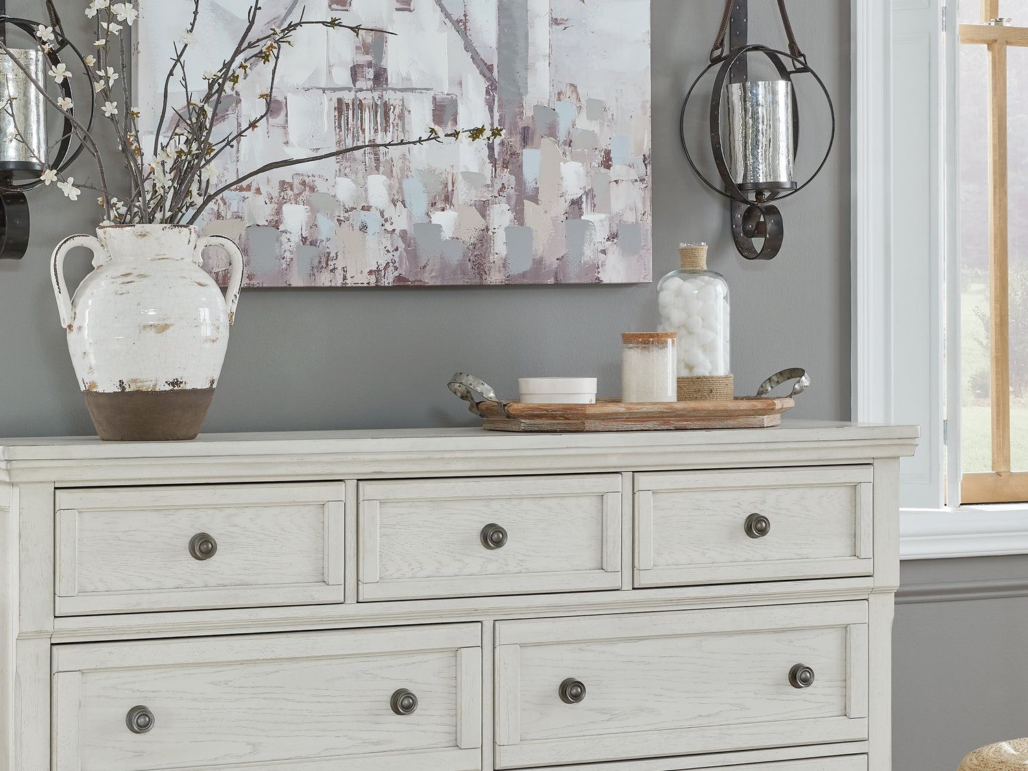 Robbinsdale Antique White Queen Panel Bed, Dresser, Chest And 2 Nightstands