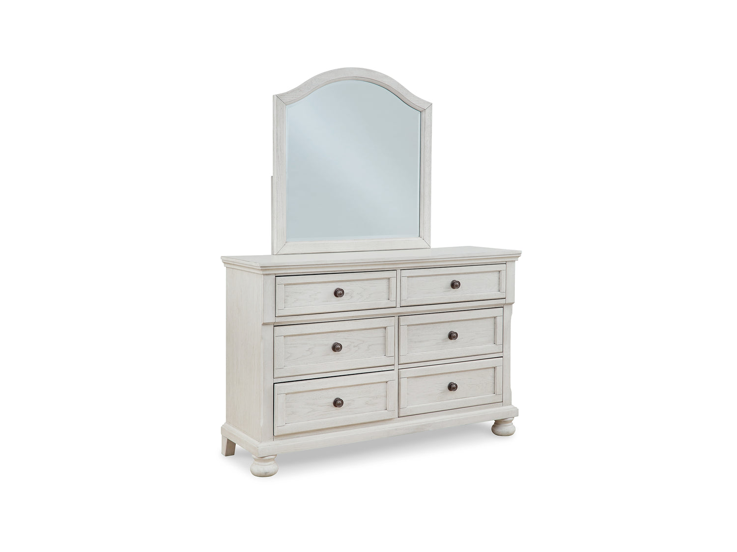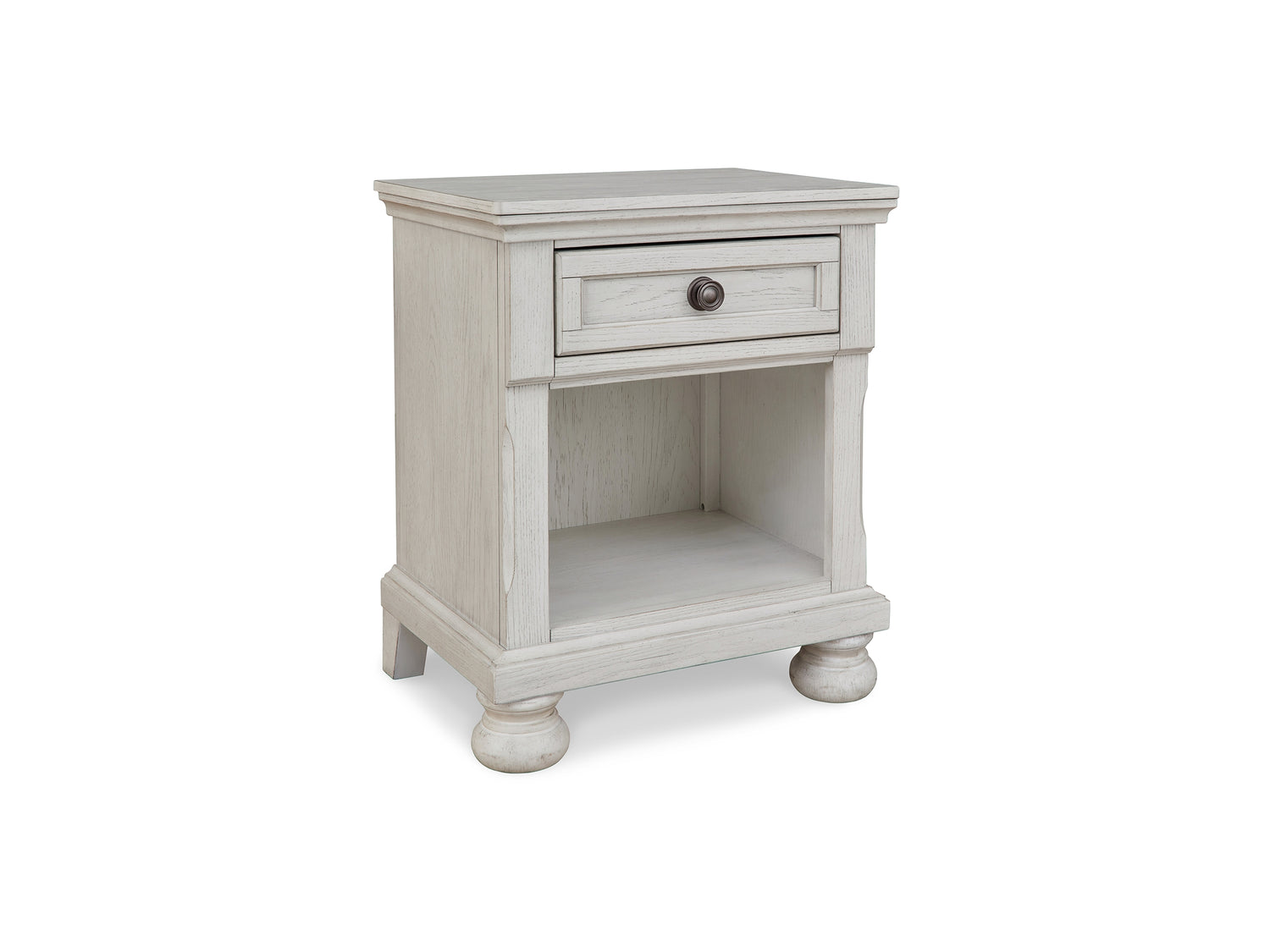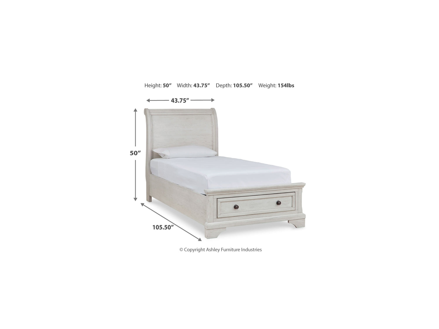 Robbinsdale Antique White Twin Storage Bed, Dresser, Mirror And Nightstand