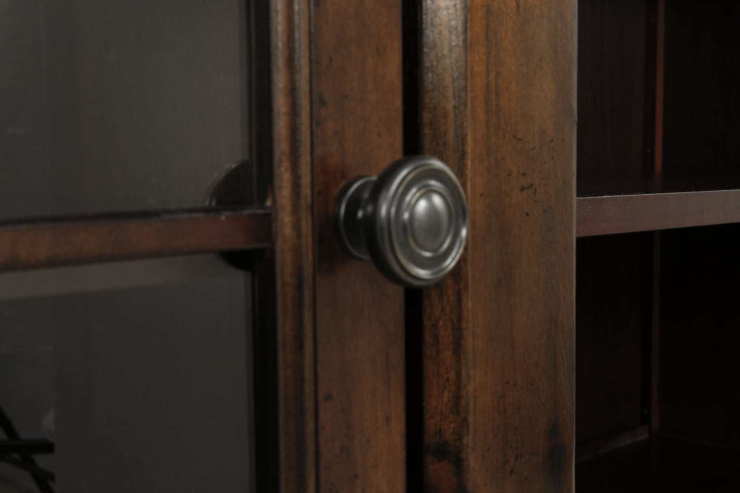 • 2 cabinets with tempered glass doors and 1 adjustable shelf, each