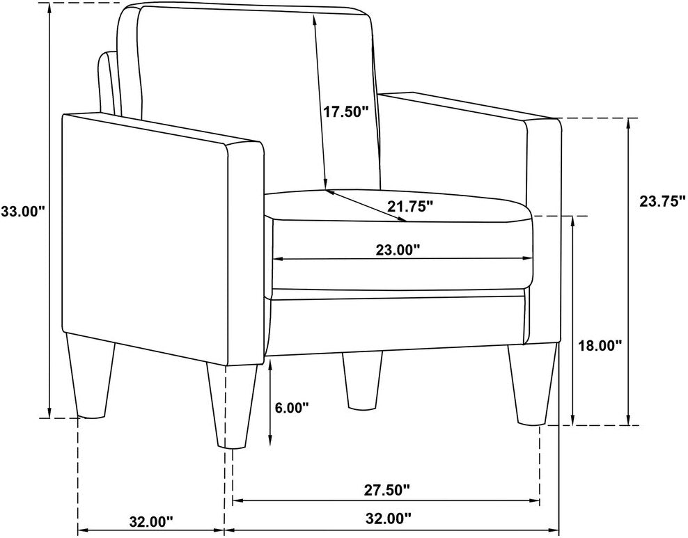 - Chair: 32.25"W x 31.5"D x 33.5"H