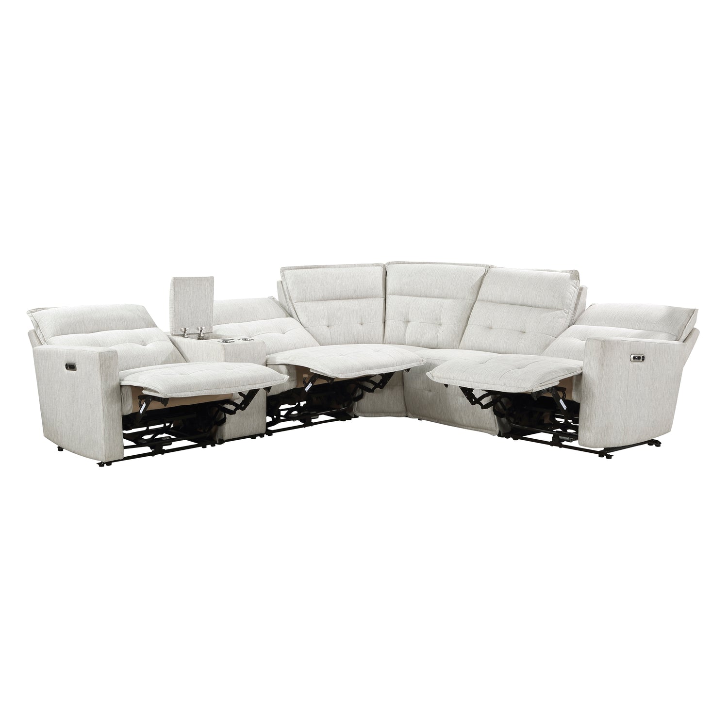 - Includes 6 pieces: Power LSF reclining chair + Console + Power reclining Armless chair + Corner seat + Armless chair + Power RSF reclining chair
