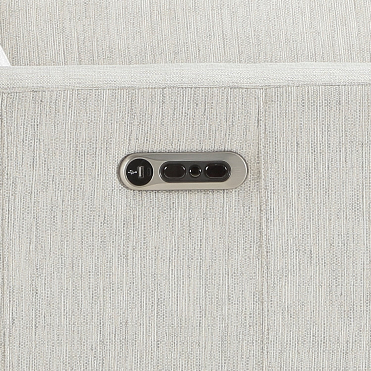 With an expanse of seating to fill your living room, the Salida Collection lends modern style, function, and comfort to your home. Hemp white textured fabric upholstery covers the collection, it’s light hue an airy palette for your decorative preferences. Power-enhanced reclining functions support ease of movement for the power left and right recliners, and power armless chair. The console features a wireless charging pad, and cupholders while the corner unit anchors the sectional’s seating expansion, and the armless chair provides movement-free seating. The seating profile of the collection features knife-edge tailoring, and contour stitching, each element lending to the modern aesthetic.