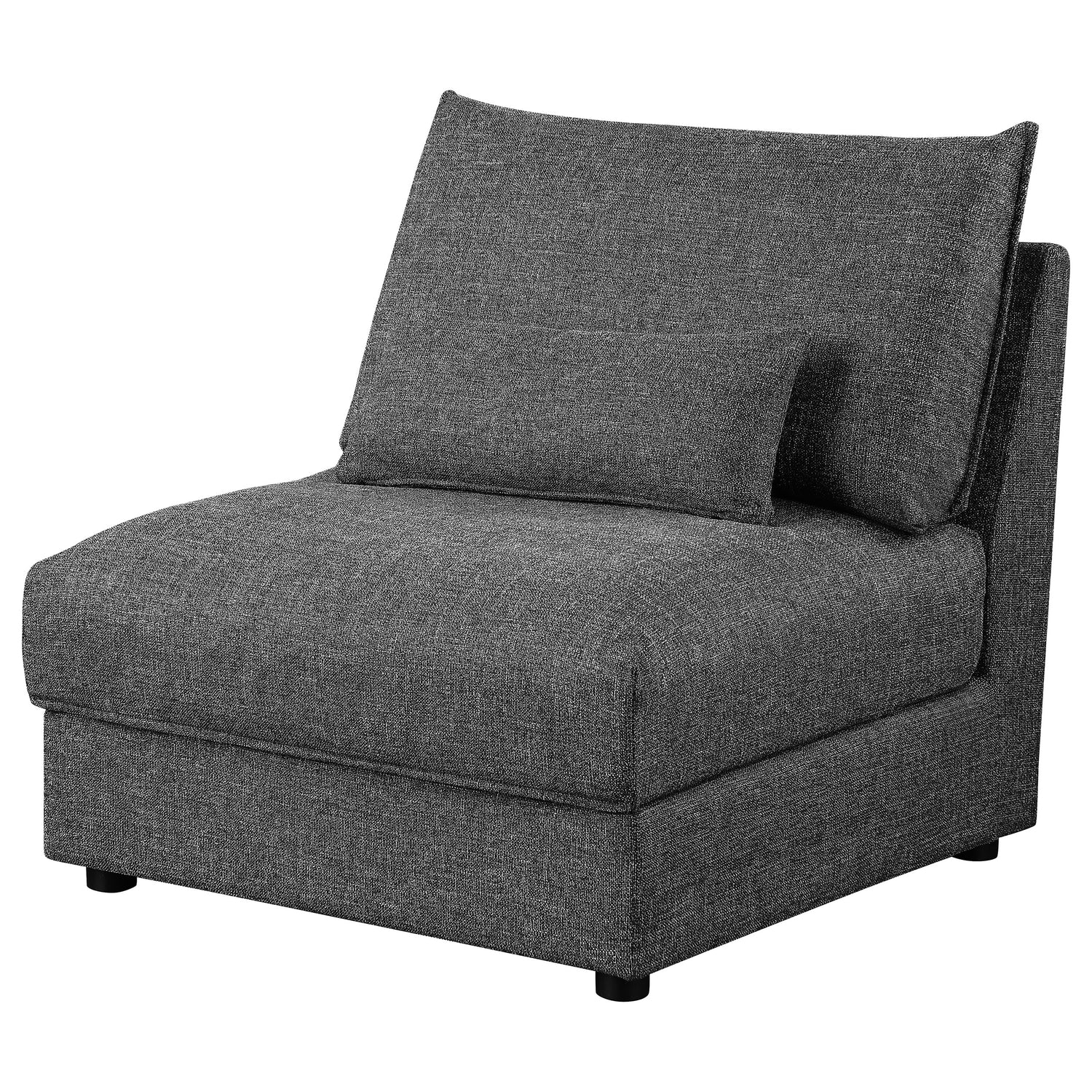 Complete your living space with the refined look and elegant simplicity of a modern modular armless chair. Alone or in a larger configuration, it features plush foam cushions with smooth upholstery for a sleek look and feel. The slipper-style chair is armless, great for a small space or adding length to a sofa. Barely black upholstery creates a sense of texture and depth while maintaining a neutral look for your living room. A lumbar pillow is included for added comfort and support.