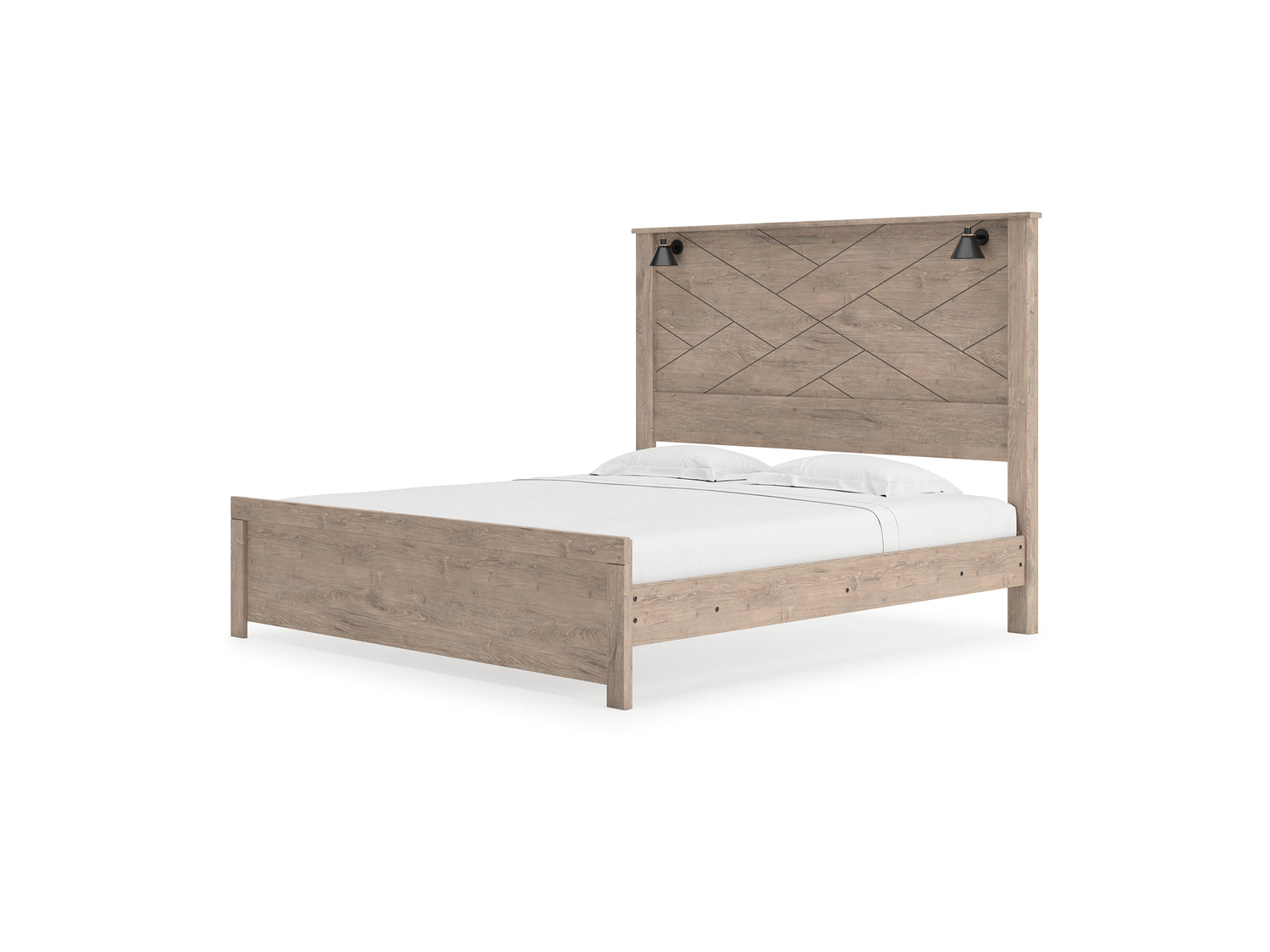 Senniberg Light Brown/White King Panel Bed, Dresser, Mirror, And Nightstand