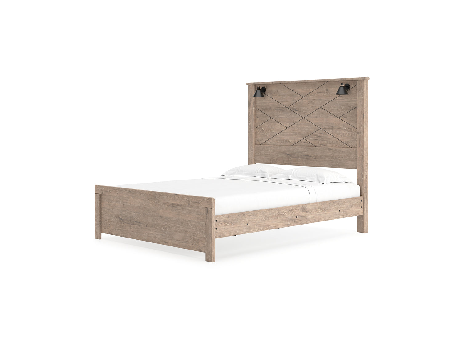 Senniberg Light Brown/White Queen Panel Bed, Dresser, Mirror, And Nightstand