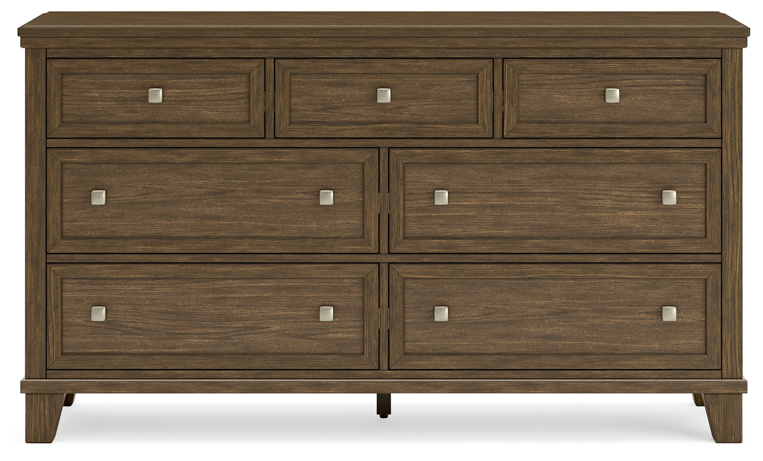 This dresser is well-suited to everyday living with its expertly balanced approach to style and function. Take the stress out of decorating—a classic medium brown finish easily pairs with existing furniture pieces. And its timeless design stays in style as you update your space, so you can effortlessly enjoy the day-to-day comforts of home.