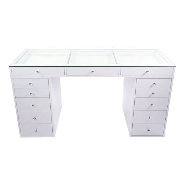 Slaystation vanities are specially designed to provide elegant storage and plenty of work space to perfect your look. Slaystation vanities feature a unique clear glass top that let’s you see all of your makeup while you’re getting ready.