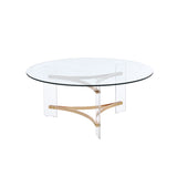 If you're looking for an elegant, minimalist coffee table that's also super sturdy, look no further than this one. The Sosi coffee table has legs that are made of acrylic, so they won't break or chip, and the glass top is clear so you can see through it to admire your home decor. The round shape means it will fit into any space in your home, but its gold metal accents make it look like something out of a magazine spread.
