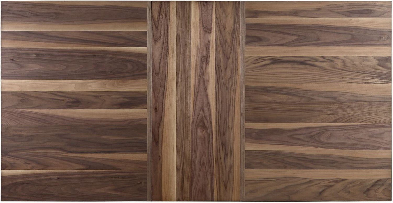 - Table top displays a beautiful open grain with natural wood curls in sappy walnut veneer