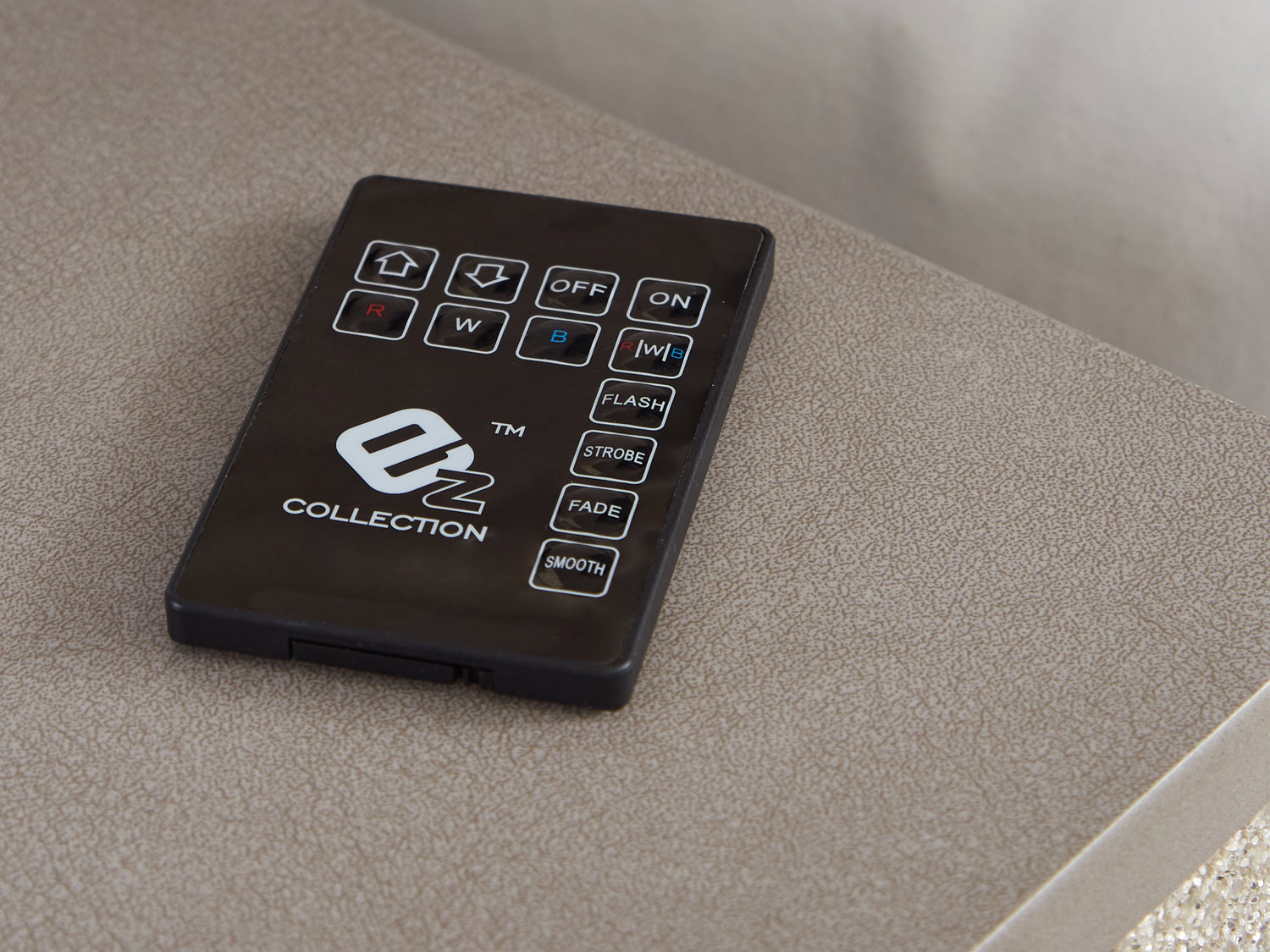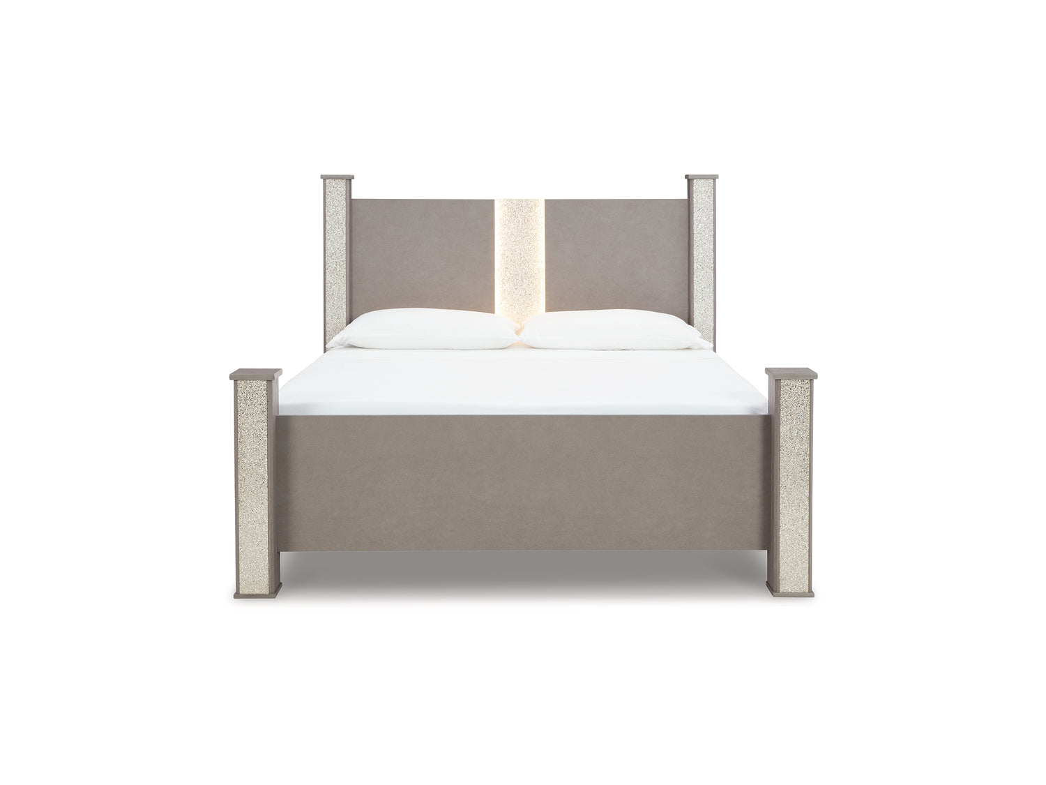Series Features: Subtle gray finish over replicated leather grain and authentic touch. Cases and bed are accented with glitter details. Large scaled champagne chrome colored handles. Side roller glides for smooth operating drawers. Drawer interiors lined with a replicated linen design for a clean finished look. Queen (57) panel headboard features glitter details accented with LED lighting and include a remote for color and brightness options. Queen (67), king (68) poster headboard panels feature glitter details accented with LED lighting and include a remote for color and brightness options. Poster headboard panels require use of poster headboard posts (62). Queen panel headboard (57) is capable of attaching a full sized metal bolt on bed frame. Queen (57) panel headboard can attach to a bolt-on metal bed B100-31. Both USB and wireless charging options are provided with the night stand. Safety is a top priority, clothing storage units are designed to meet the most current standard for stability, ASTM F 2057 (ASTM International). Drawers extend out to accommodate maximum access to drawer interior while maintaining safety. Assembly required.