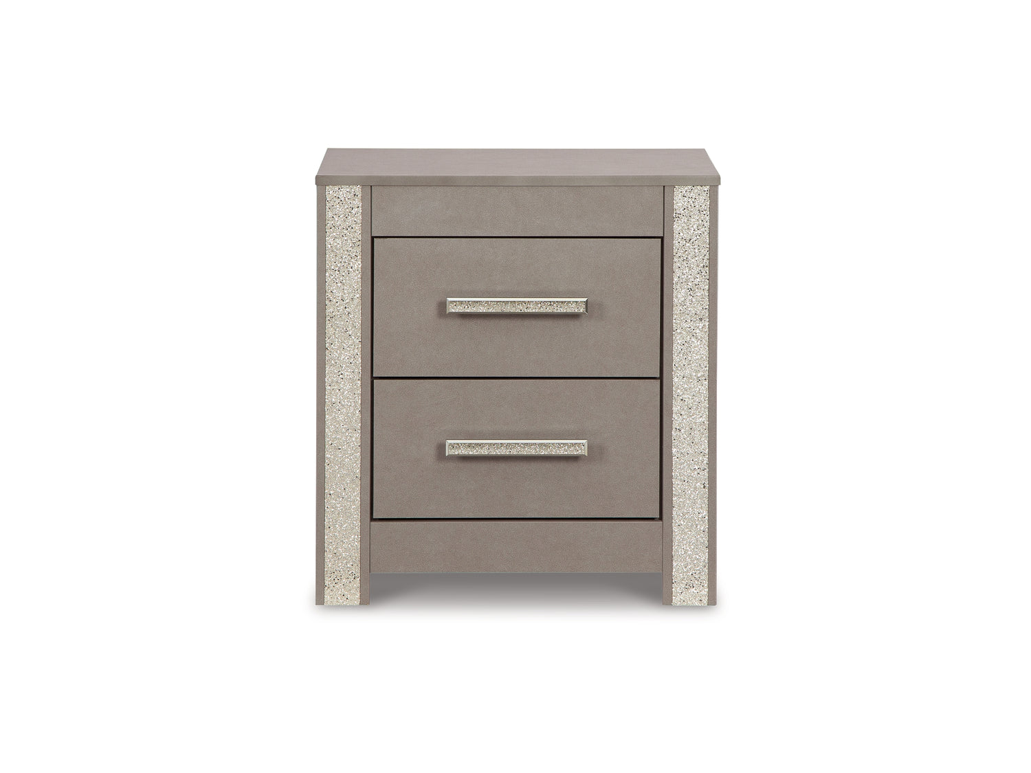 Series Features: Subtle gray finish over replicated leather grain and authentic touch. Cases and bed are accented with glitter details. Large scaled champagne chrome colored handles. Side roller glides for smooth operating drawers. Drawer interiors lined with a replicated linen design for a clean finished look. Queen (57) panel headboard features glitter details accented with LED lighting and include a remote for color and brightness options. Queen (67), king (68) poster headboard panels feature glitter details accented with LED lighting and include a remote for color and brightness options. Poster headboard panels require use of poster headboard posts (62). Queen panel headboard (57) is capable of attaching a full sized metal bolt on bed frame. Queen (57) panel headboard can attach to a bolt-on metal bed B100-31. Both USB and wireless charging options are provided with the night stand. Safety is a top priority, clothing storage units are designed to meet the most current standard for stability, ASTM F 2057 (ASTM International). Drawers extend out to accommodate maximum access to drawer interior while maintaining safety. Assembly required.