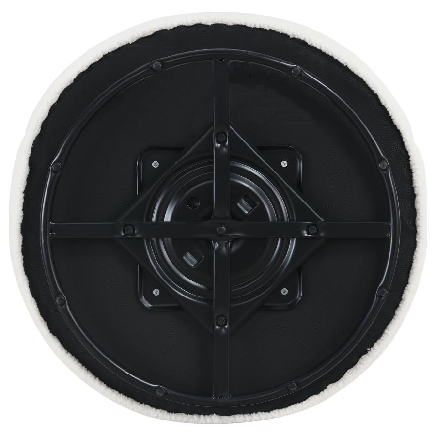 Compact in silhouette but overflowing with style, this contemporary accent chair is a perfect choice for a bedroom or living room sitting area. Its rounded, barrel-inspired silhouette swivels for 360-degree seating perfect for multi-functional spaces. The tight back and seat are upholstered in bright white faux sheep skin that adds soft texture and dimension with an earthy, modern twist. Foam cushioning assure maximum comfort, with webbing support for a firm feel. Perfect for lounging during a video call or catching up with friends and family.