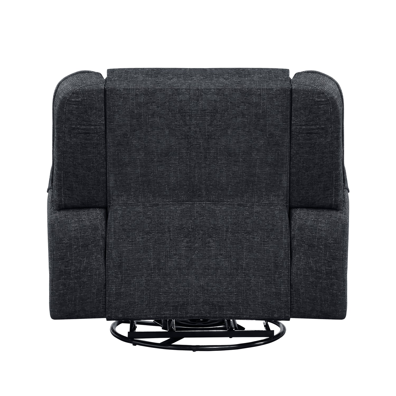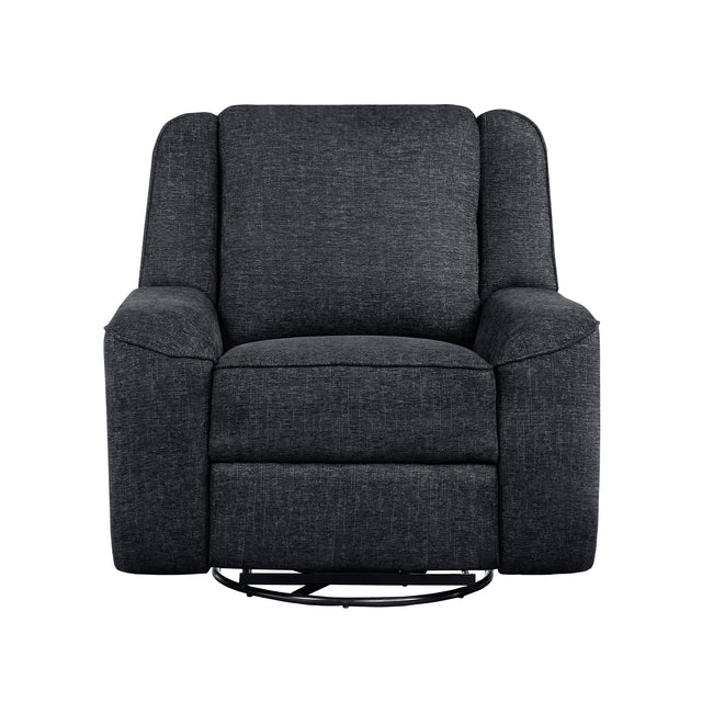 The monterey collection offers a contemporary seating arrangement that is perfect for the living room of your house. its sleek profile and dark shade provide a neutral canvas for your ornamental style, while its comfort offers a reprieve from the hustle and bustle of everyday life. the swivel chair comes equipped with a reclining mechanism that can be operated by hand, so maximizing the amount of space available for stretching out. the chair's upholstery is made out of an ebony-colored chenille fabric.