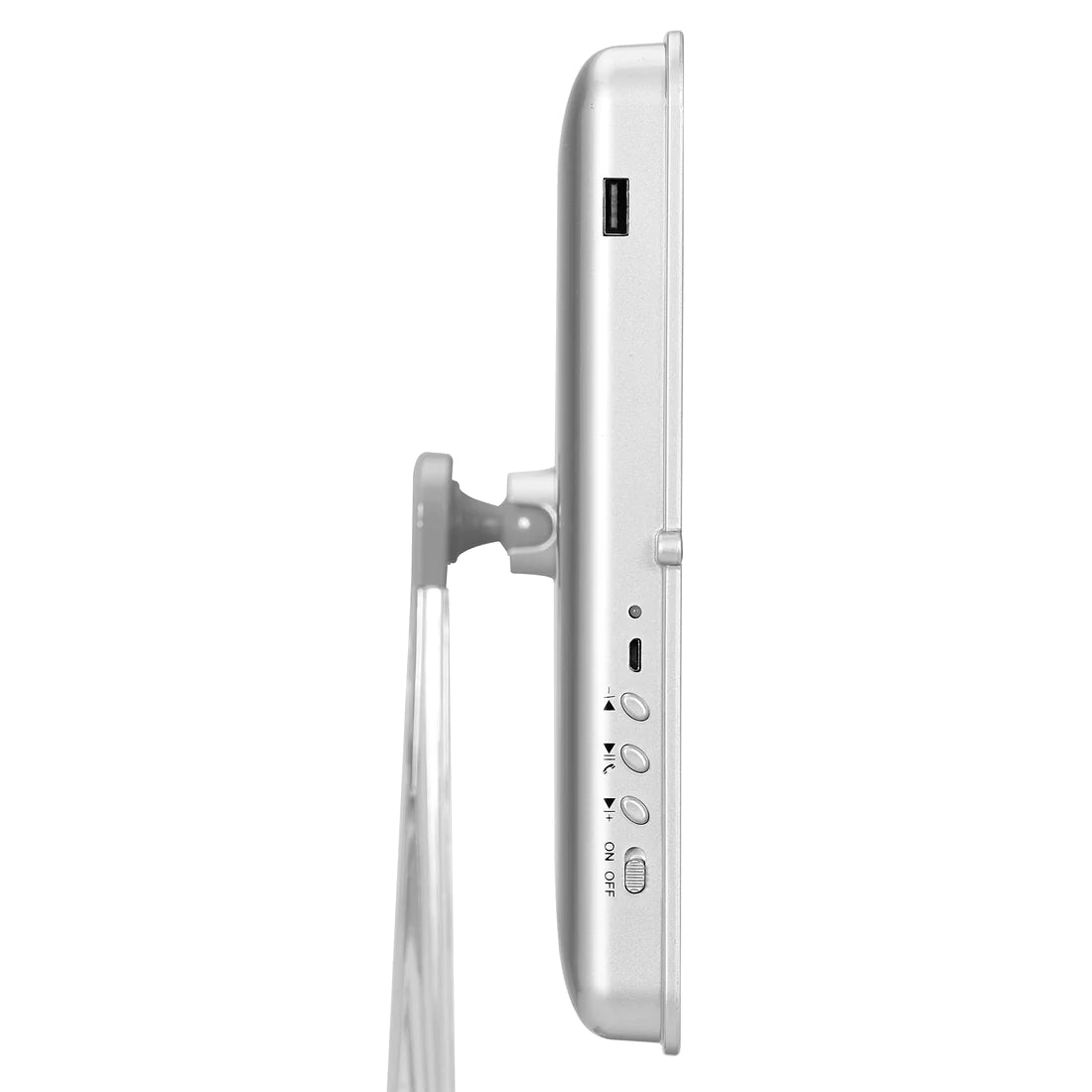 The mirror can swivel and tilt for your comfort and get the best angles! Equipped with a rechargeable battery for vanity on the go. The Touch Pro can also be a power bank! Charge your phone by plugging it into the Touch Pro’s USB slot.