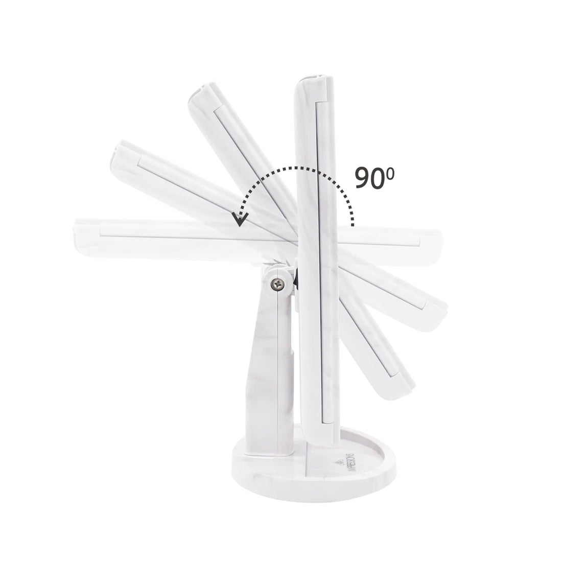 Touch Trifold Dimmable LED Makeup Mirror - White Marble is backordered and will ship as soon as it is back in stock.