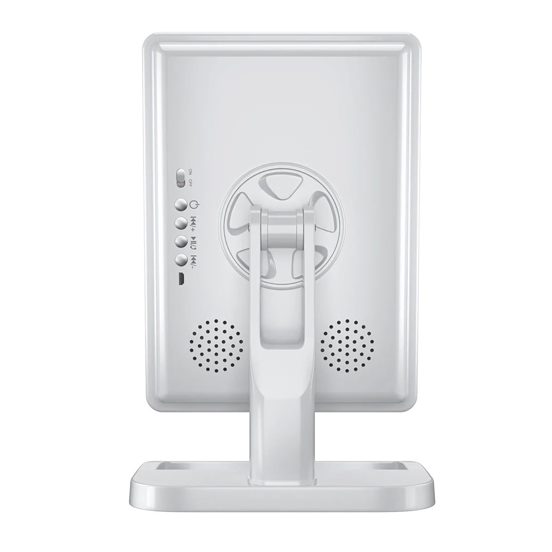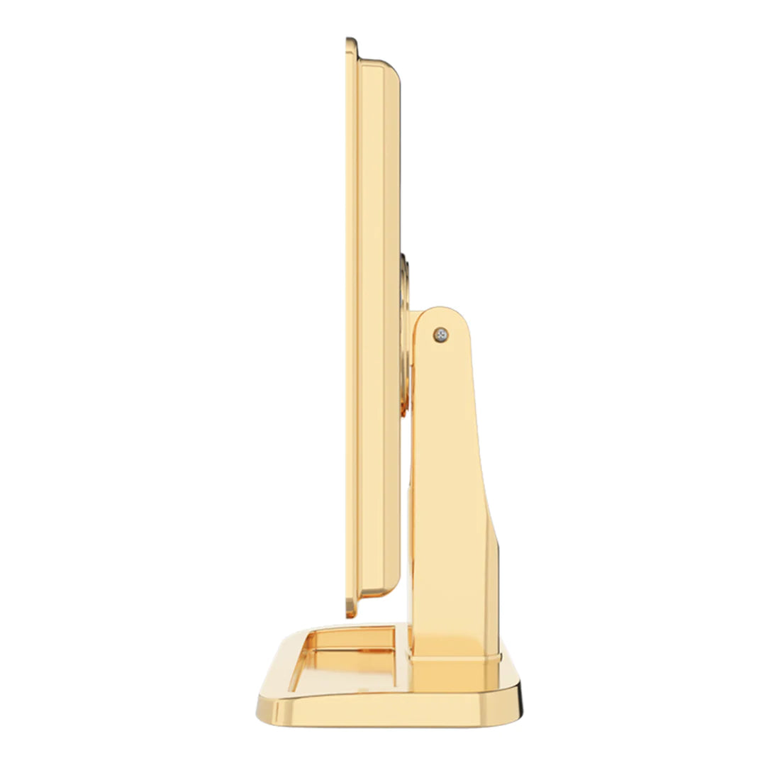 This light and portable illuminated makeup mirror has 20 energy-saving bright white daylight LEDs activated and dimmable via a touch power sensor. The base includes a storage section to store your earrings, makeup brushes, and other smaller accessories in. Rechargeable so you can take it anywhere with you!