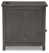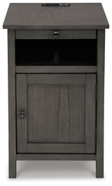 Add big character to a small space with this chairside end table. With its compact size and strong silhouette, it can go anywhere and blend easily into the decor. Less is so much more with the Shaker-inspired design and gray wood tone finish. Loaded with form and function, this end table displays accent pieces and stores essentials securely while keeping devices powered up.