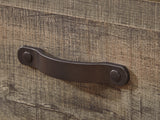 Series Features: Warm rustic plank finish over replicated Oak grain and authentic touch. Tops of cases and headboard/footboard panels are captured with a nail trimmed corner piece. Rolling trundle storage box enables the option of storage or bed. Side roller glides for smooth operating drawers. Handles feature nailhead trim in a dark bronze metal finish. Slim profile dual USB charger located on the back of the night stand tops. B100-11, B100-12 can be used in substitution of a box spring on the twin or full panel beds. Poster bed offers optional footboard storage. Safety is a top priority, clothing storage units are designed to meet the most current standard for stability, ASTM F 2057 (ASTM International). Drawers extend out to accommodate maximum access to drawer interior while maintaining safety.