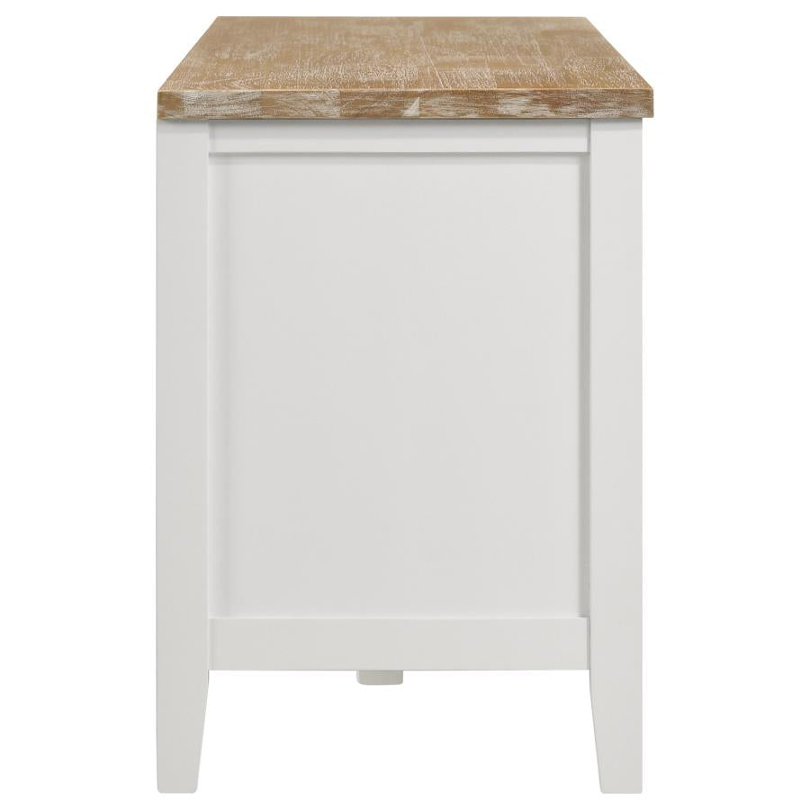 Versatility is a definite plus in the design of this charming transitional wood TV stand. Spacious and equipped with plenty of storage room, this console creates a breezy look with cottage, coastal, and farmhouse influence. A rectangular brown finish ash wood top provides a breathtaking contrast to a white finished frame. Place components in a center open space and on adjustable shelving behind two glass-front doors, and stash media and accessories in a large slide-out drawer. This all-in-one console organizes entertainment devices and accessories to make sure your media viewing is smooth and easily accessible.