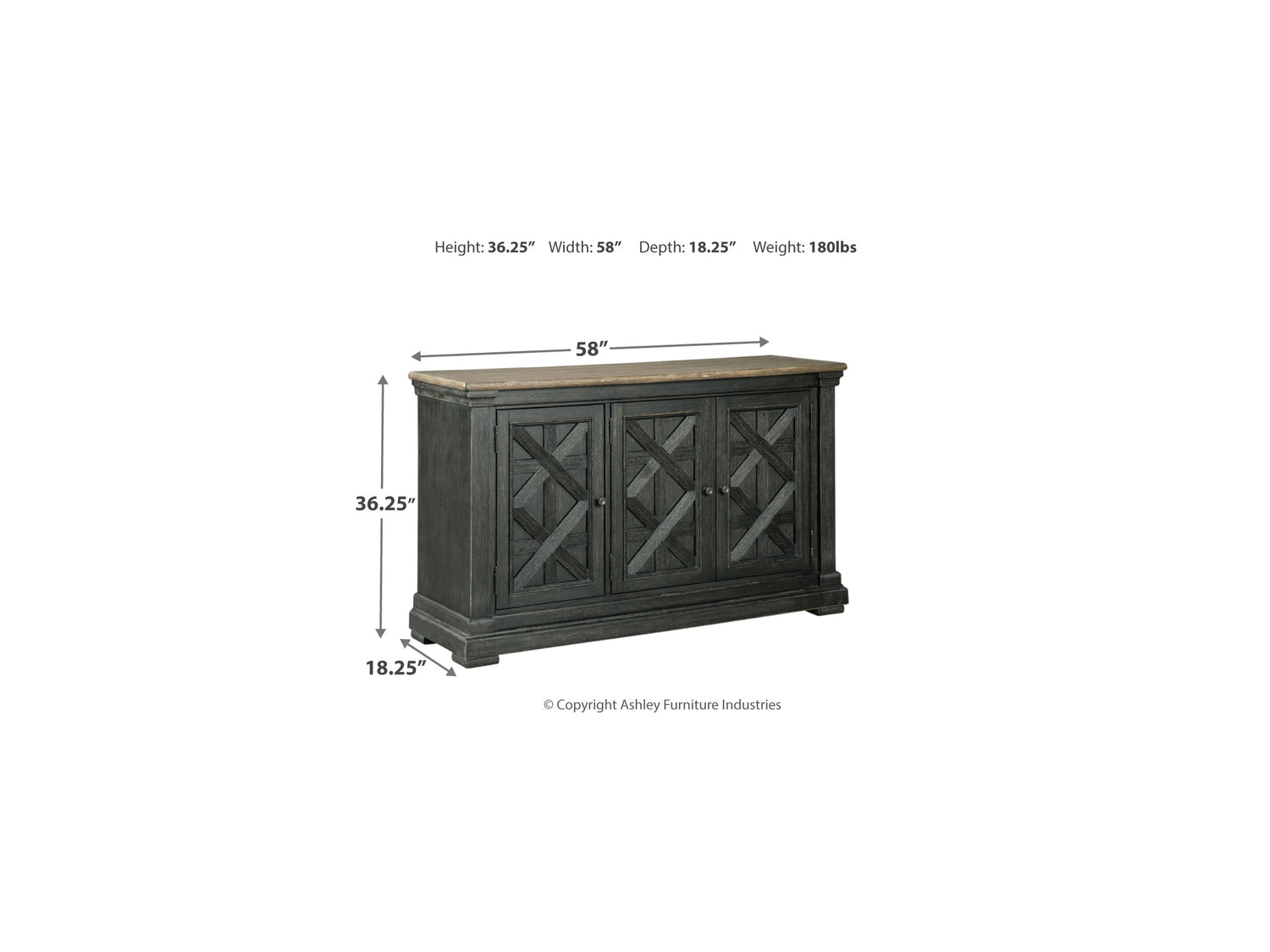 Tyler Creek Black/Grayish Brown Counter Height Dining Table And 4 Barstools With Server is backordered and will ship as soon as it is back in stock.