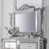 Characterized with button-tufted upholstery, intricate scrollwork, and lustrous finish, the Valkyrie Bedroom Collection provides the feeling of luxury and sophistication. Ornate carvings with floral scroll design on each piece boast extravagant silhouettes and dramatic style. Antique Platinum Finish paired with muted gray tone fills the collection with a noble and elegant flair. Felt-lined drawers feature a self-closing mechanism with built-in safety stops and keep items in place as you open and close the drawer. Give your interior a royal touch and classic look with the Valkyrie Bedroom Collection.