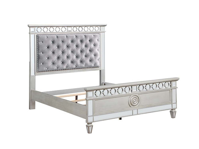 Varian Gray Velvet, Silver & Mirrored Finish Twin Bed