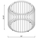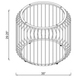 With a chic Art Deco vibe and retro-inspired flair, comes this modern dining table base. Featuring a cylindrical shape surrounded by slim metal rods all around, this dining table base gives off a cage-like appearance and an open and airy style. With a lustrous polished chrome finish throughout, it opens itself up to existing color palettes, allowing you to play with tablescapes and seating as you wish. Versatile and convenient, this sturdy metal base allows you to top whatever size or shape tabletop you desire in the space. Make it a dramatically bold, wide end table or an oversized round dining table suitable for multiple guests.