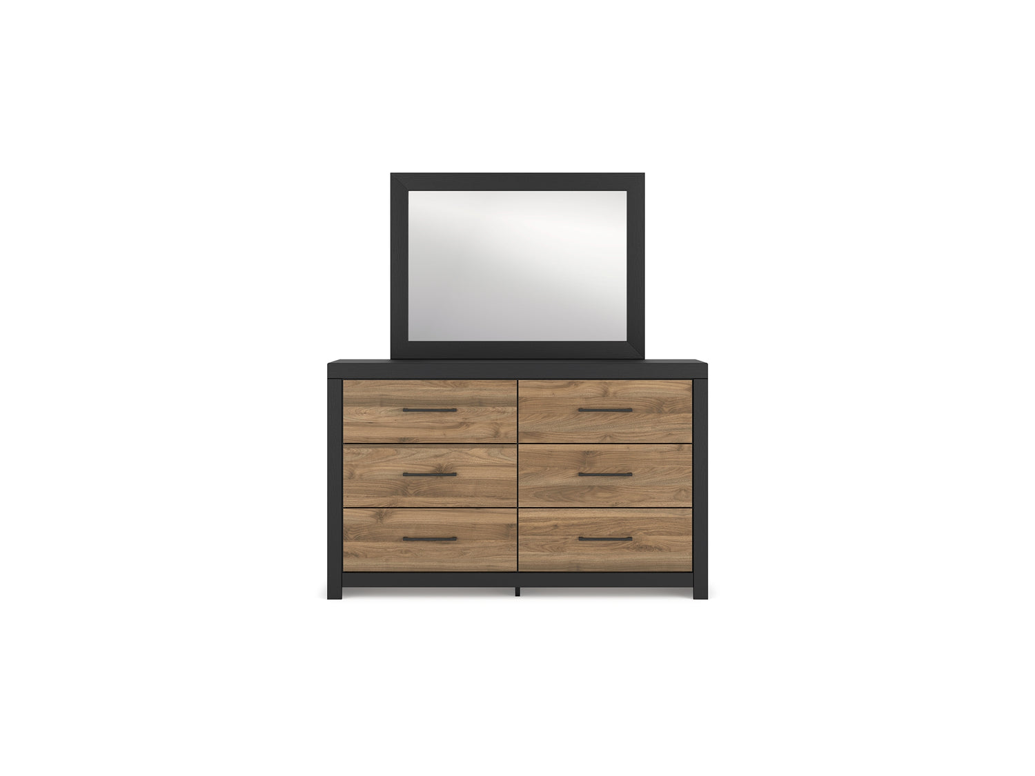 Series Features: Two-toned with a matte black finish and a rich honey brown finish with replicated Walnut grain and authentic touch. Cases feature a framed front and pilasters. Contemporary handles in an antiqued gunmetal finish. Side roller glides for smooth operating drawers. Drawer interiors finished with a replicated linen design. Slim USB charger located on the back of the nightstand tops. Mirror (36) has the versatility to be mounted on dresser or wall horizontally or vertically. Safety is a top priority, clothing storage units are designed to meet the most current standard for stability, ASTM F 2057 (ASTM International). Drawers extend out to accommodate maximum access to drawer interior while maintaining safety. Minor assembly required.