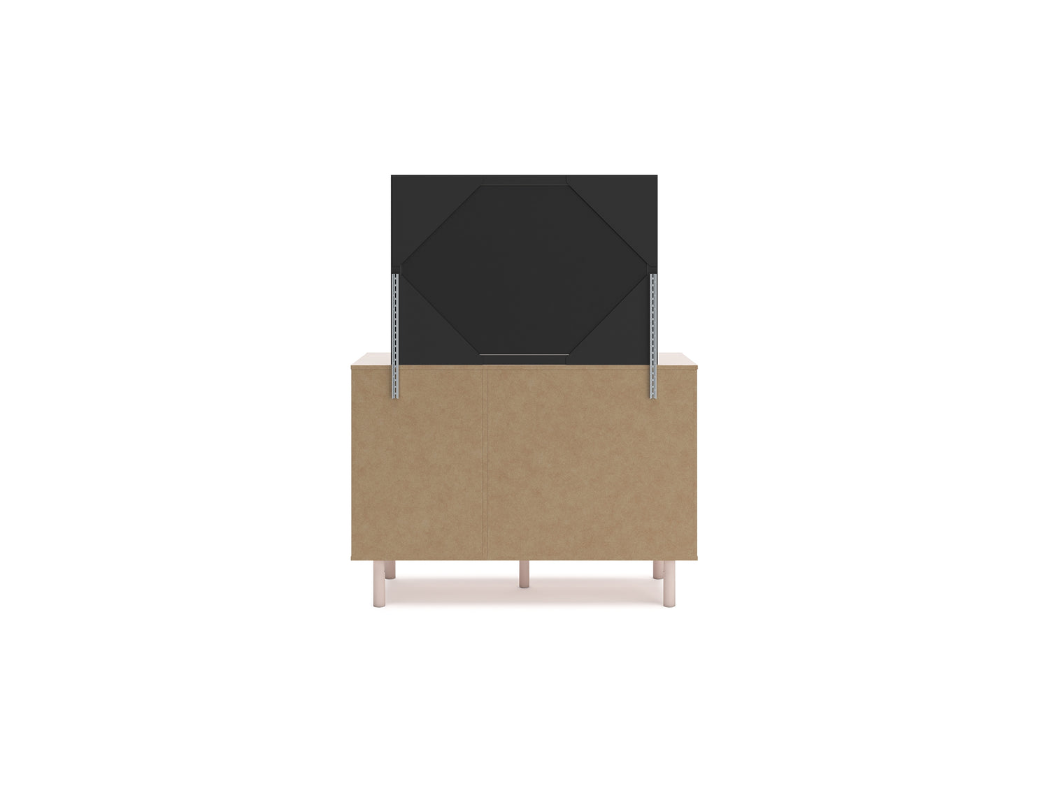 Series Features: Subtle blush finish over replicated pecan wood grain. Inset drawers with champagne colored knobs. Side roller glides offer a smooth opening and closing of the drawer. Drawer interiors are lined with a replicated linen design for a clean, finished look. All cases feature cylindrical legs. Slim USB charger located on the back of the night stand tops. Twin (53) and full (87) upholstered headboards can attach to a bolt-on metal bed frame B100-21. Bed panels (52,84) require the use of twin/full platform rails (89) and roll slats (B100-11, B100-12). All side storage options (50,150) requires the use of the B100-11, B100-12 roll slats. All under bed storage units (50,150) accommodates to 10.5"W x 10.5"D x 11"H cube storage bins. Mirror (36) has the versatility to mount on the dresser or to the wall horizontally or vertically. Minor assembly required. Safety is a top priority, clothing storage units are designed to meet the most current standard for stability, ASTM F 2057 (ASTM International). Drawers extend out to accommodate maximum access to drawer interior while maintaining safety.