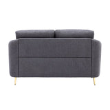 Slightly rounded and slopped armrests are used to create a modern silhouette on the Yuina loveseat. The softness of the gray linen upholstery counterbalances the gold metal legs for a clean stylish look, also making it easy to style with its neutral tones. Plush seat cushions make for a lush seating experience for you and your guests. The pinewood inner frame is resilient and will last years of use.