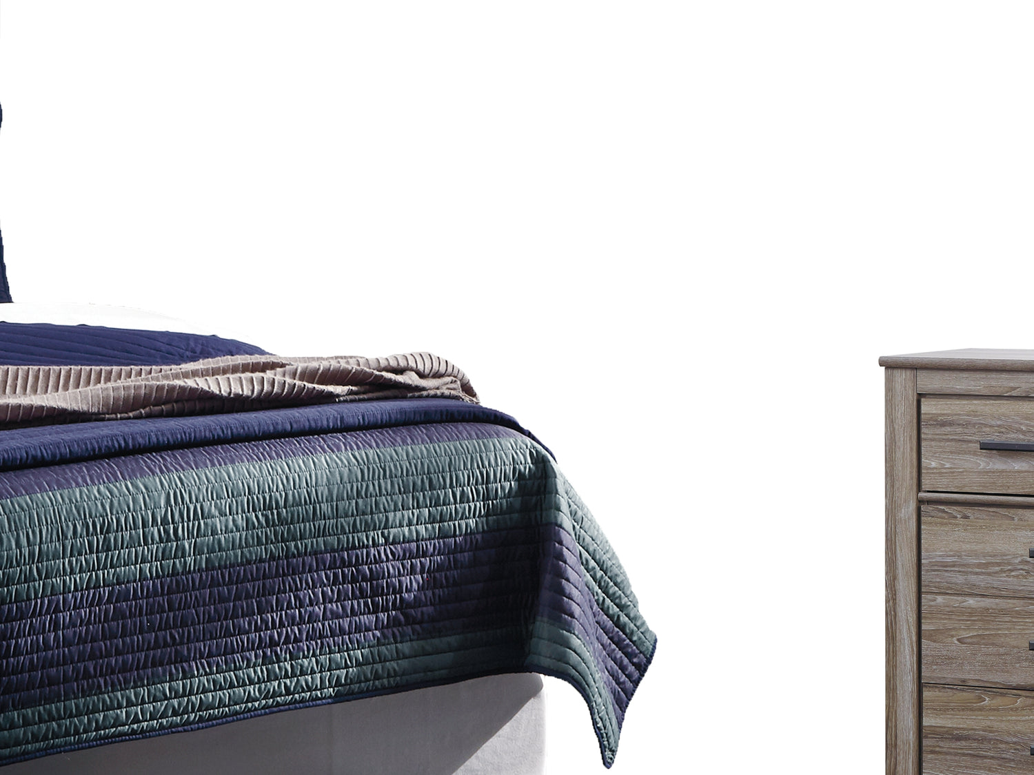 Series Features: Warm gray sophisticated vintage finish with white wax effect over replicated oak grain. Tall generously scaled cases with wide pilaster, finished off with gently curved foot. Large dark pewter color handles with an aged appearance accent cases. Modern styled deep panel bed enhanced with horizontal pocket details. Side roller glides for smooth operating drawers. Queen (67) and king/cal king (68) headboards can attach to a bolt-on metal bed frame B100-31 or B100-66 respectively. Safety is a top priority, clothing storage units are designed to meet the most current standard for stability, ASTM F 2057 (ASTM International). Drawers extend out to accommodate maximum access to drawer interior while maintaining safety.
