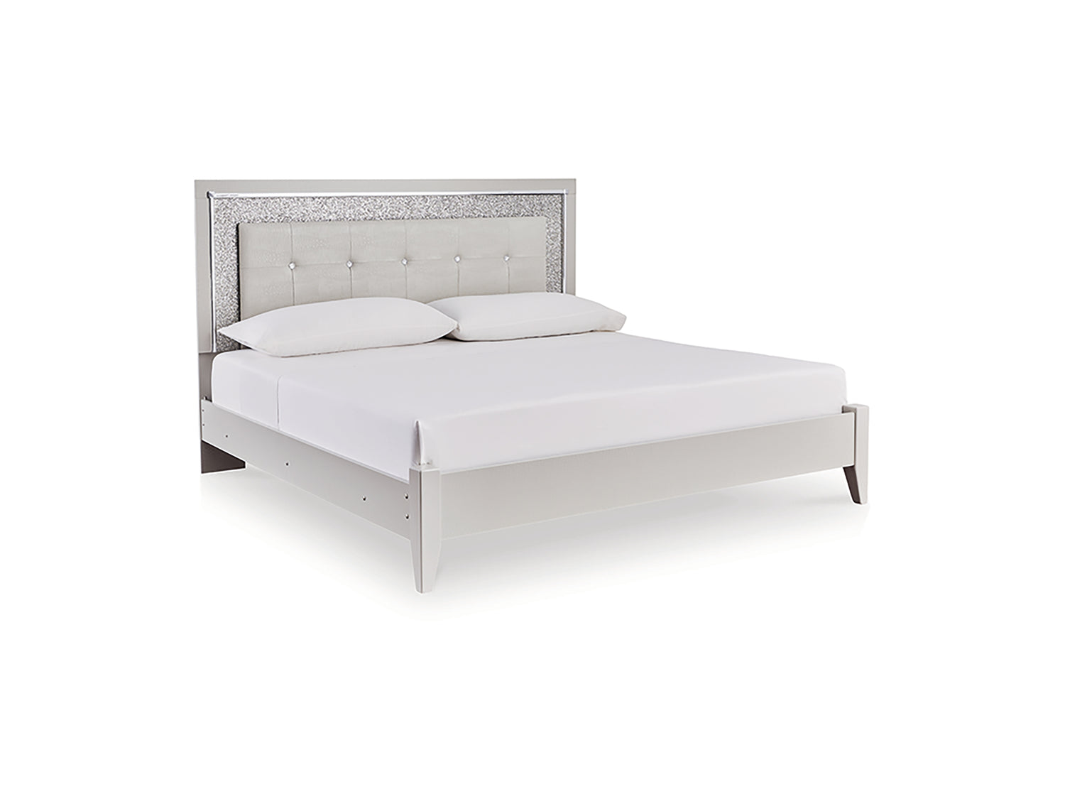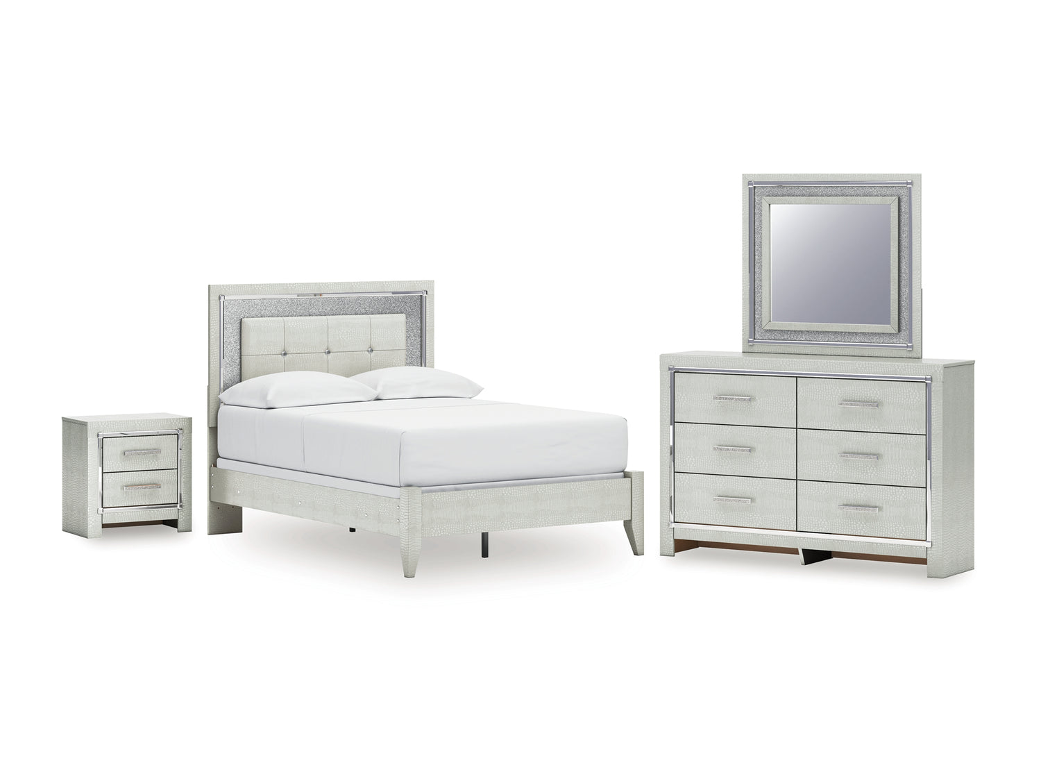 Zyniden Silver Full Panel Bed, Dresser, Mirror And Nightstand